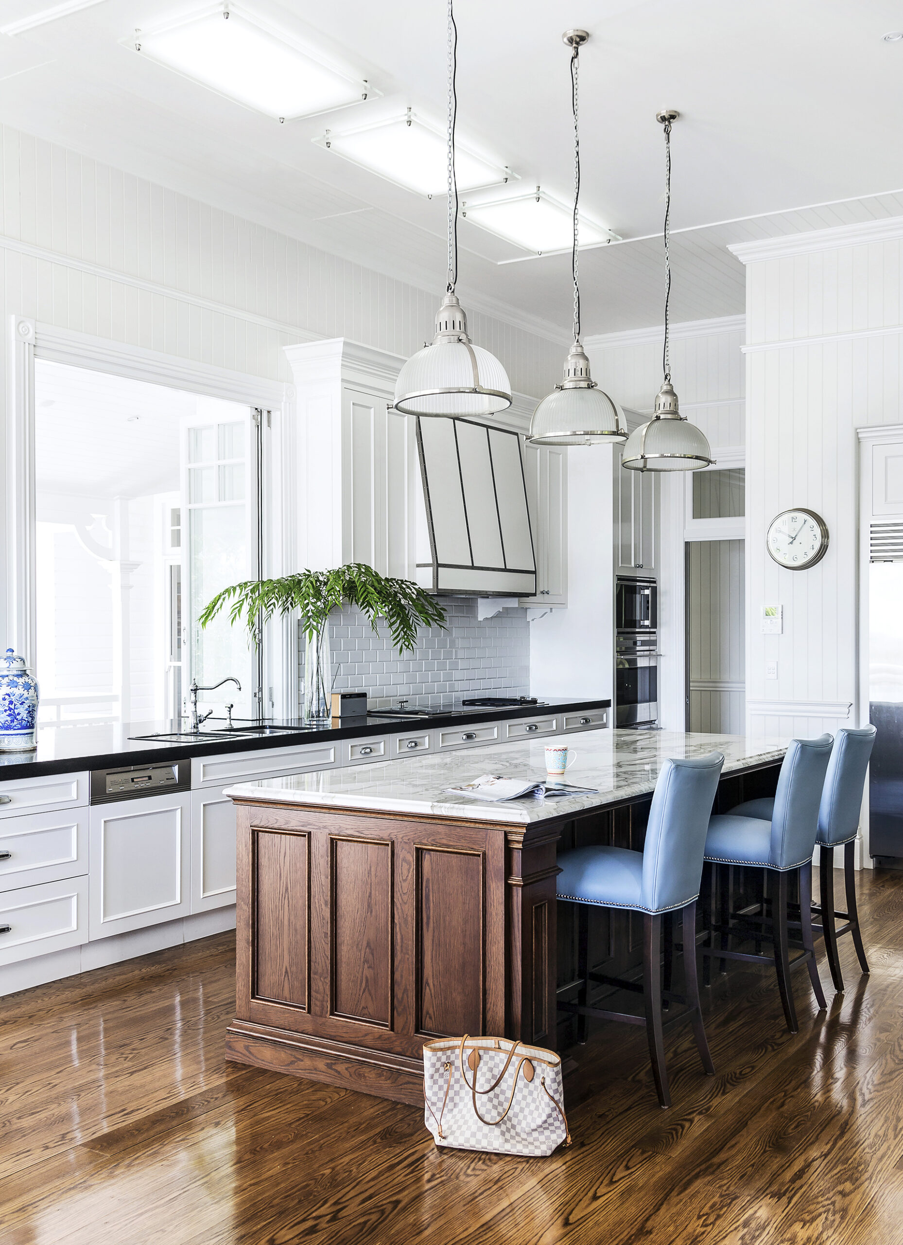 Respect for tradition and a love of blue prove to be magic ingredients in this classic shaker-style kitchen. “The clients adore navy and white, so it was only natural that this would be the palette we worked with,” says interior designer Kate Walker