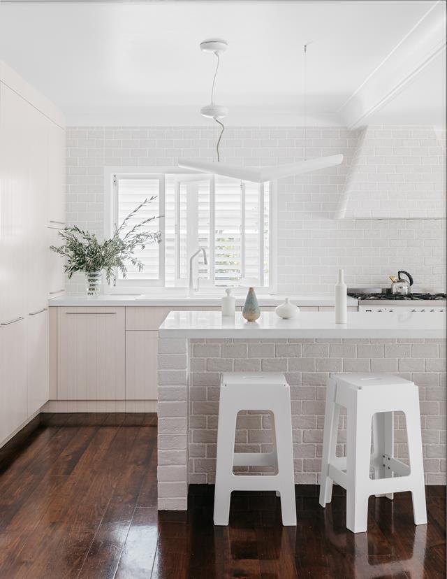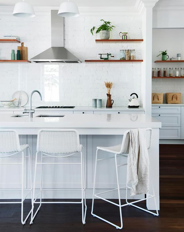 (Credits: Photography: The Palm Co | Styling: Jen Young Design | Story: Australian House & Garden)Period features were restored in this 1920s bungalow and the dated extension was given a contemporary refresh with a sparkling white kitchen and custom joinery.