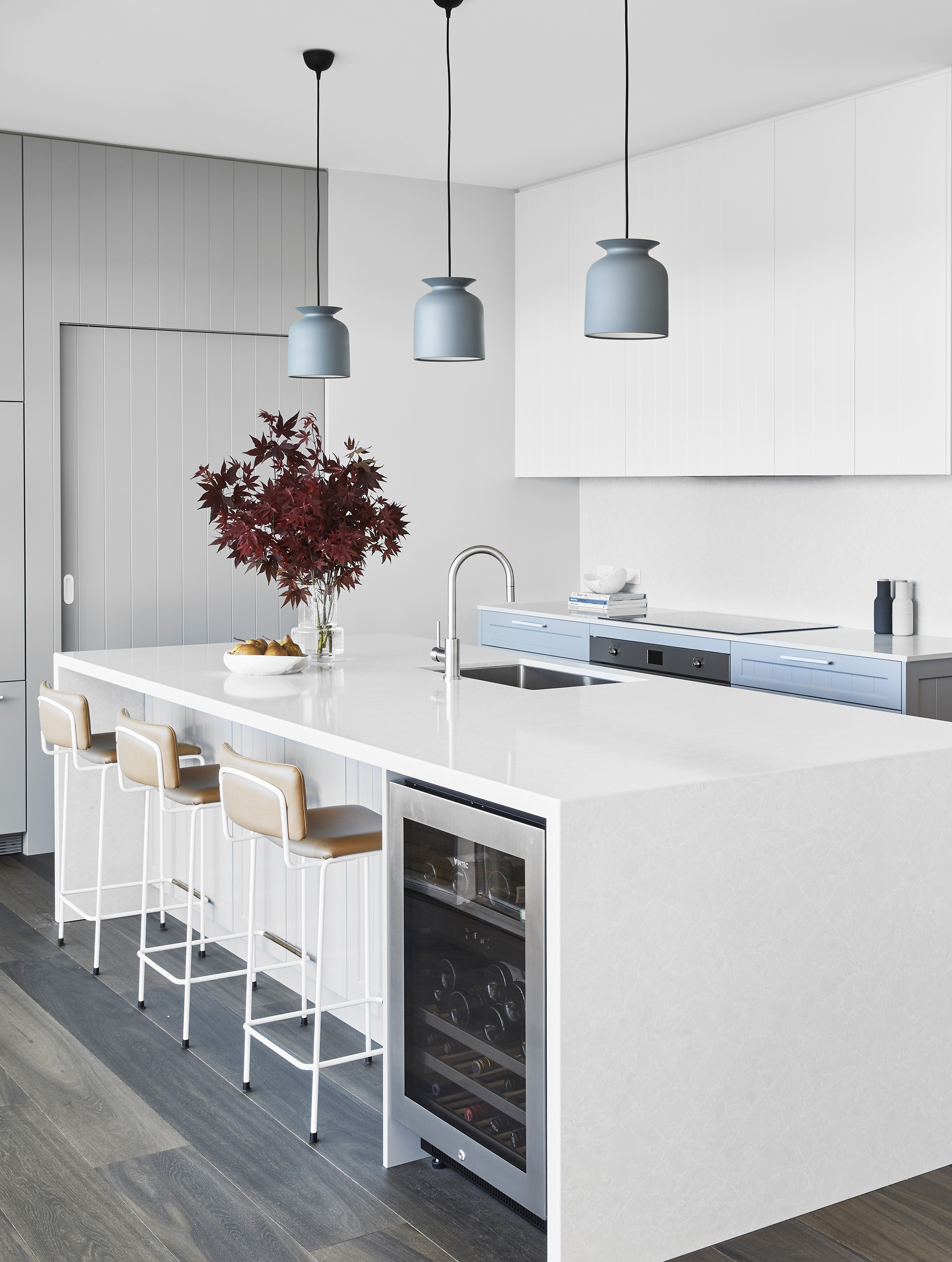 A combination of white and soft grey imbues this Sydney kitchen with a sense of calm, which is also derived from having an abundance of storage. “Everything has a place,” says interior designer Annie Bowen.