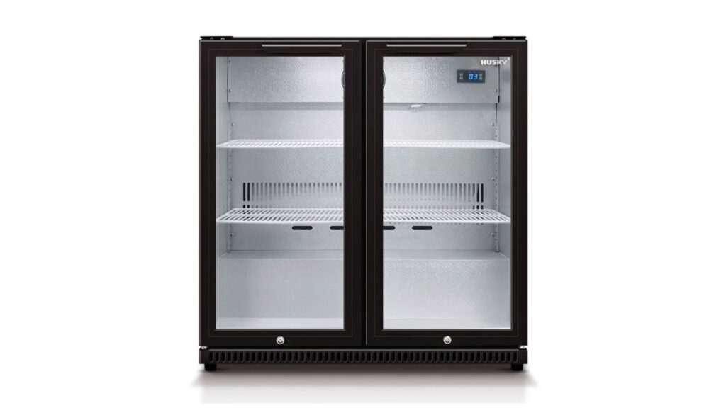Invest in a spacious double-door bar fridge from Husky. Designed for sheltered outdoor use, this bar fridge features handy self-closing doors, interior LED lights as well as separate locks on each door for added security.