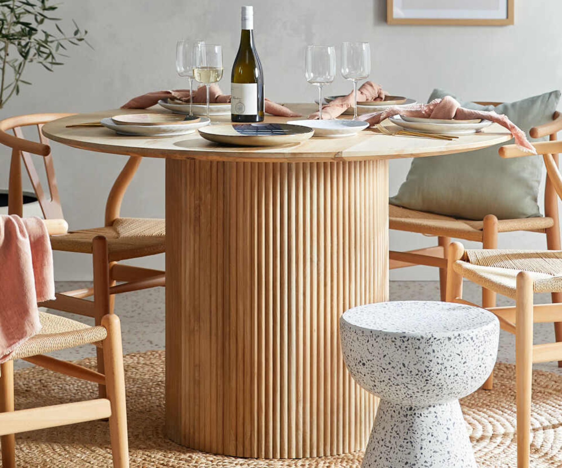 - Anika round dining table, $999, Temple & Webster (here’s why)