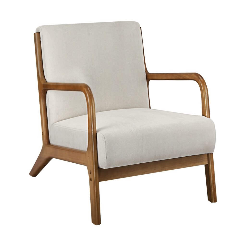 This contemporary timber armchair makes for the perfect reading chair or, more realistically, laundry chair. Taking design cues from modern Danish design, the chair features curved timber armrests which contrasts nicely against the cream-coloured foam cushioning.