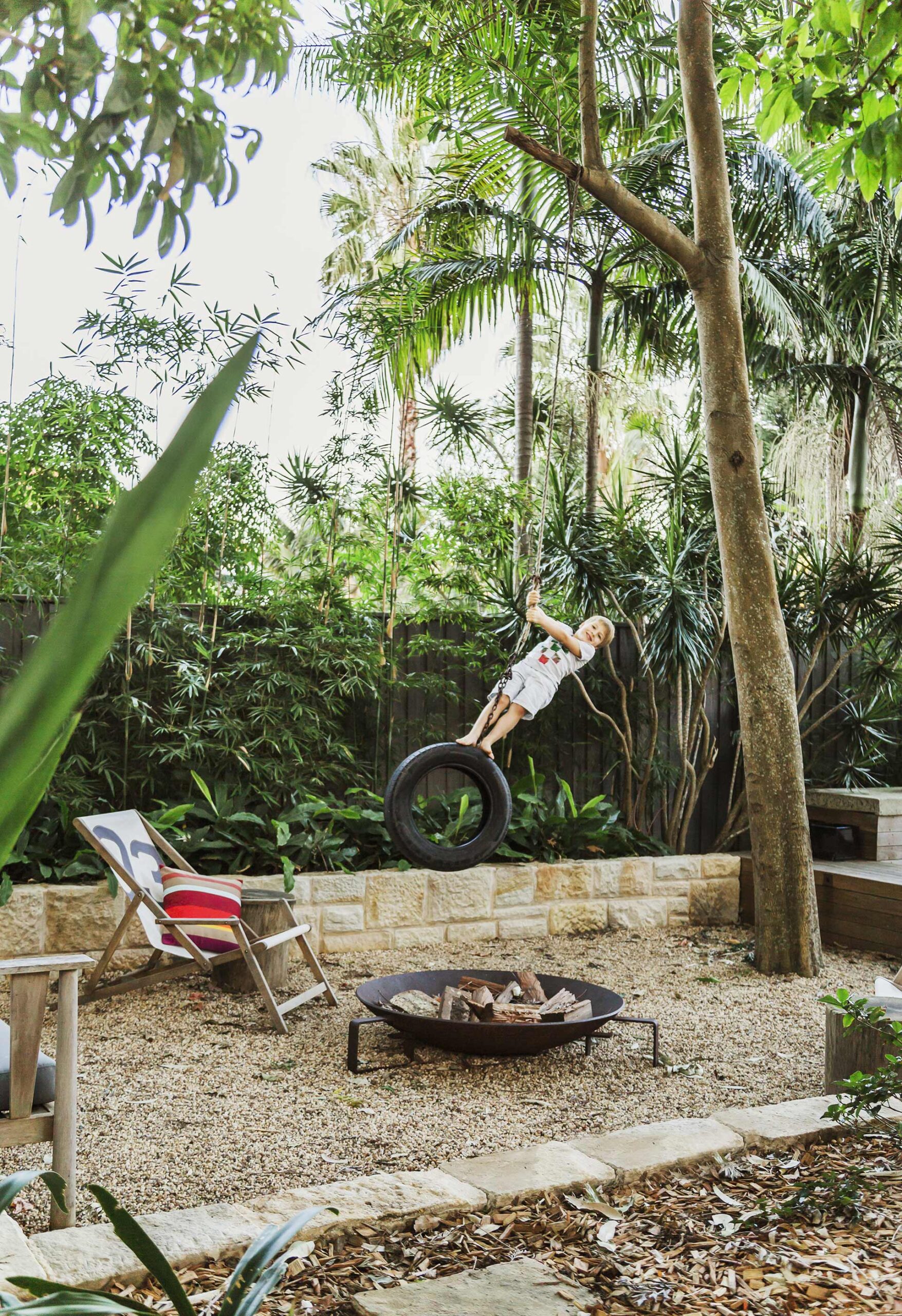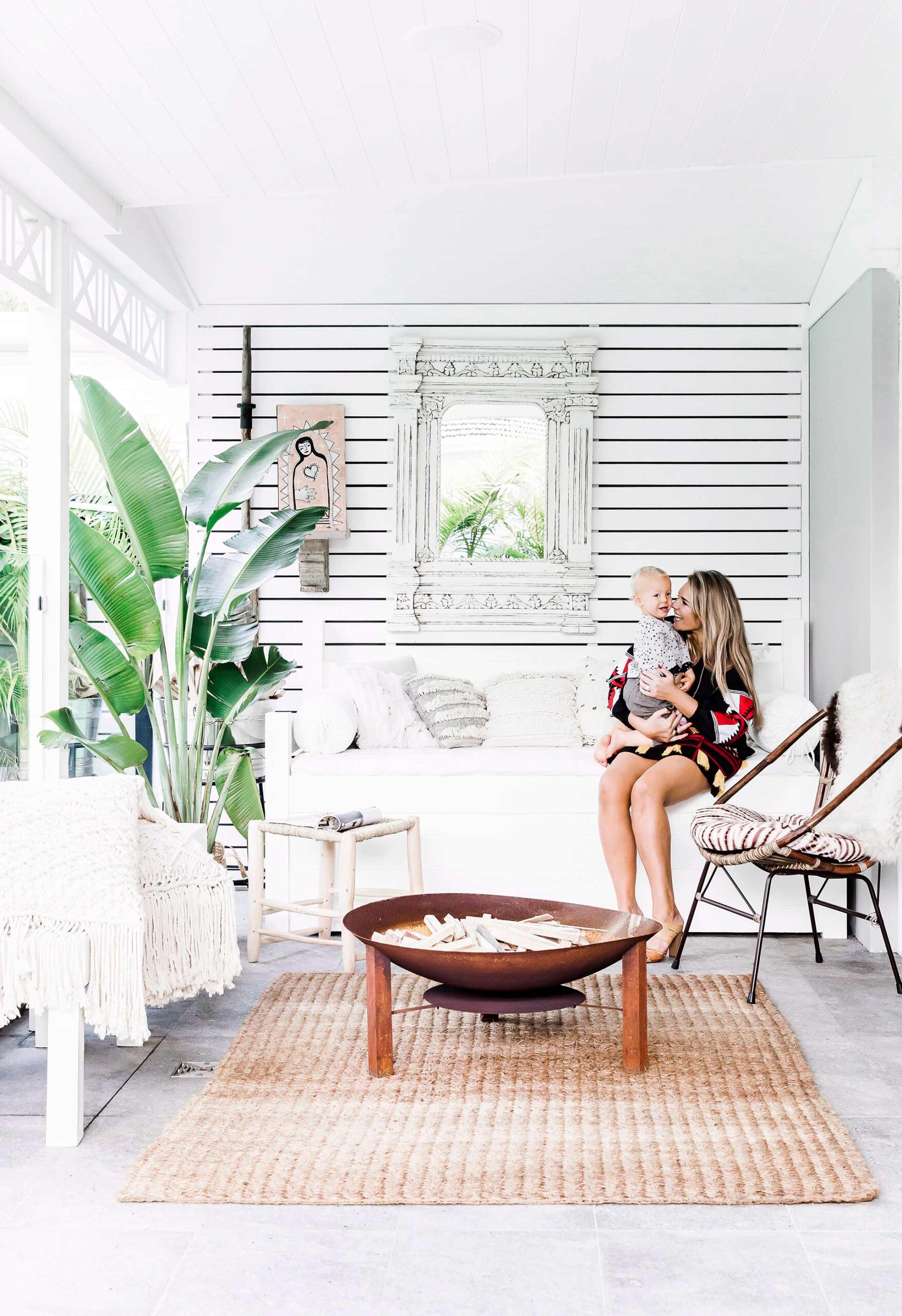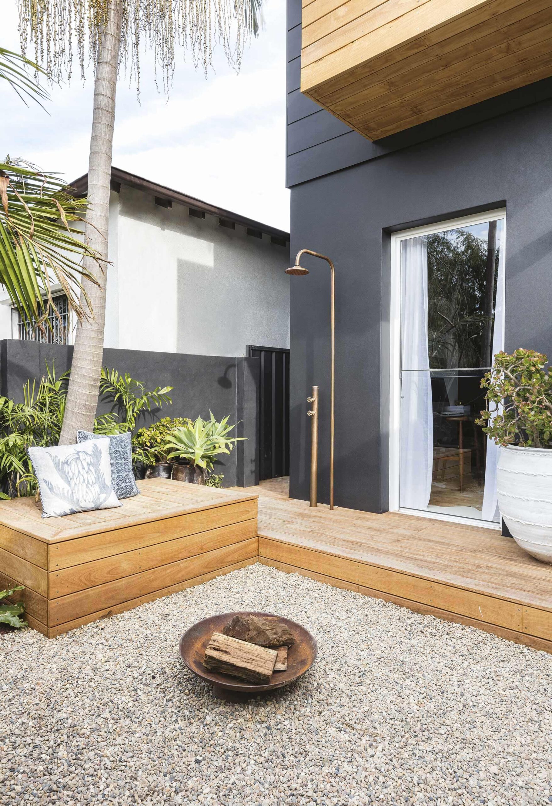 A Robert Plumb fire pit makes a bold statement in the backyard of this family-friendly beachside home that allows the residents to entertain all year round.