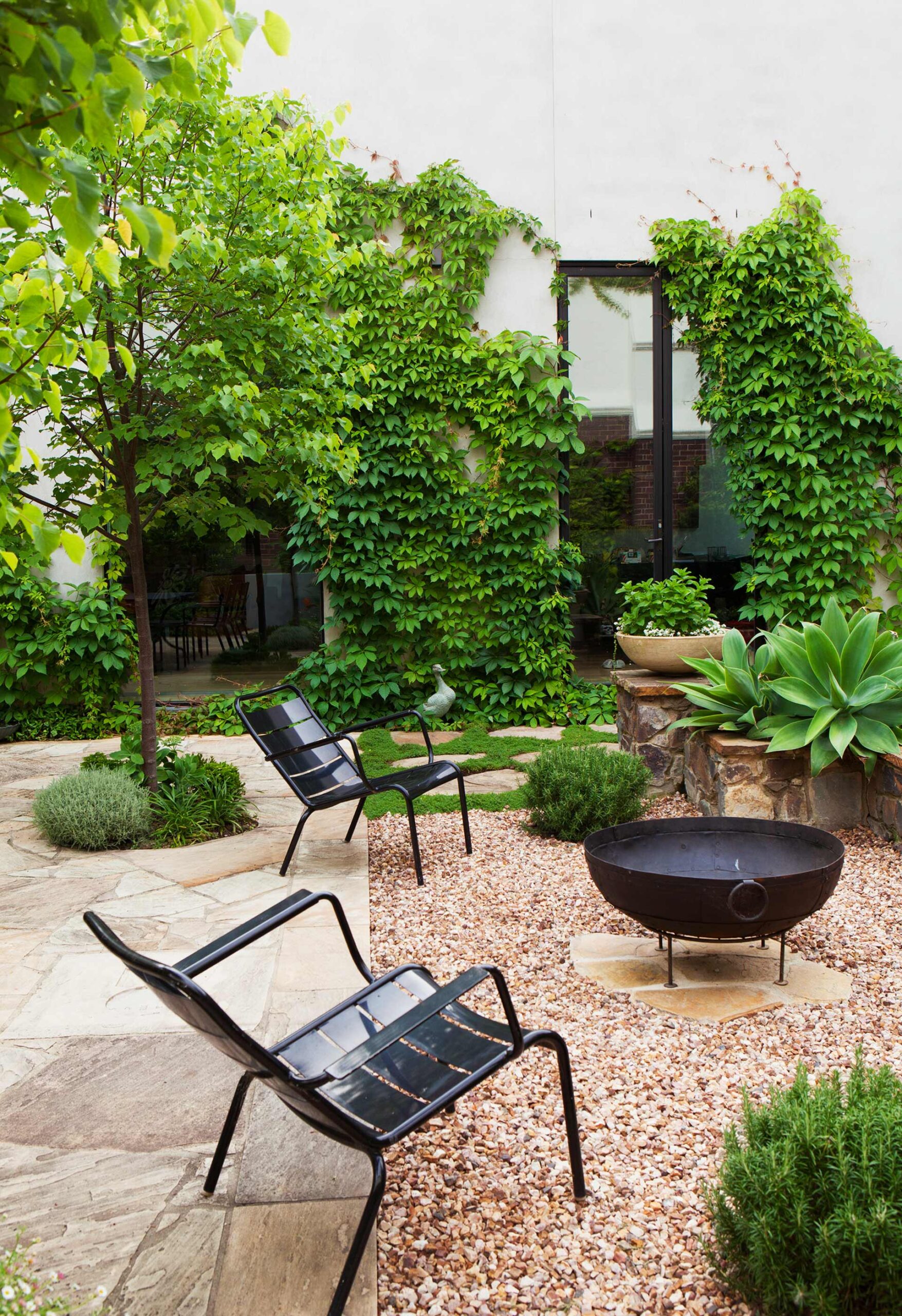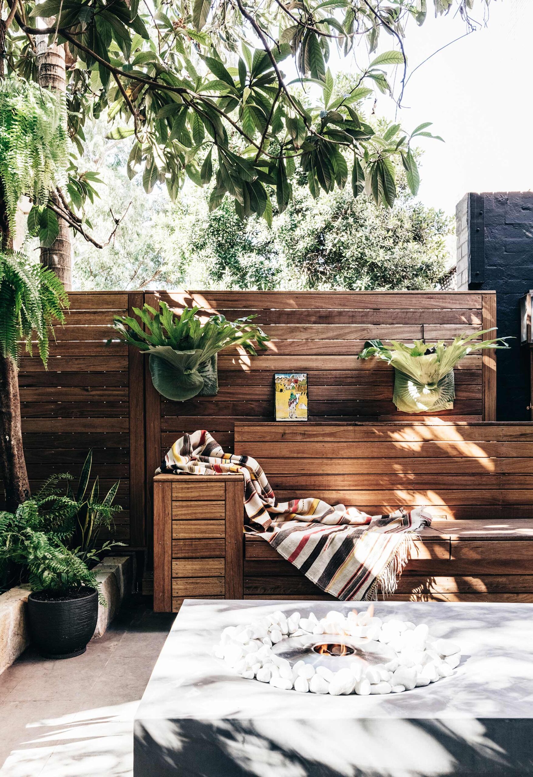 The heritage-listed terrace in Sydney was given a brand new outdoor entertaining zone complete with ample built-in seating and lush plantings. A statement EcoSmart fire pit is the crowning feature.