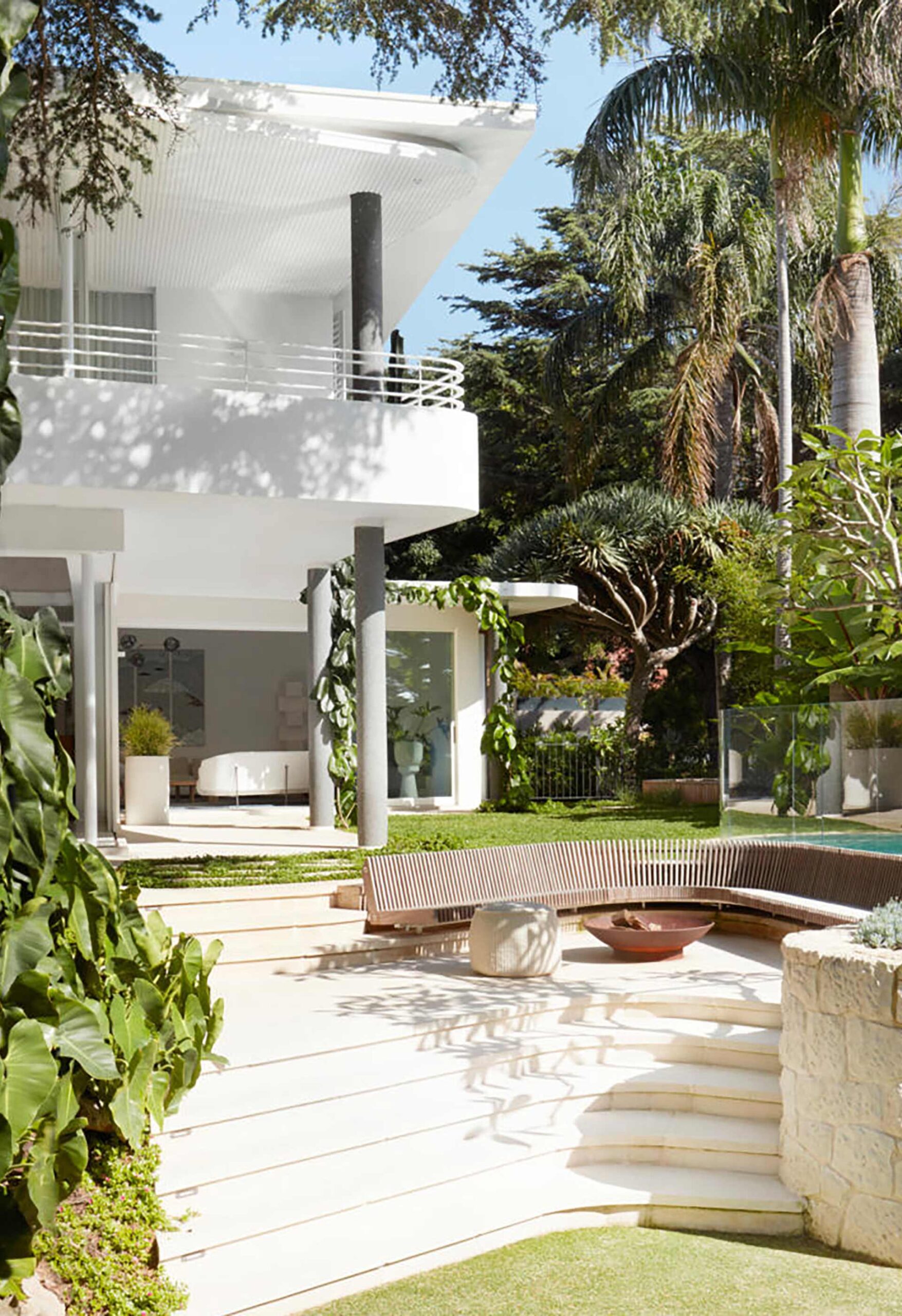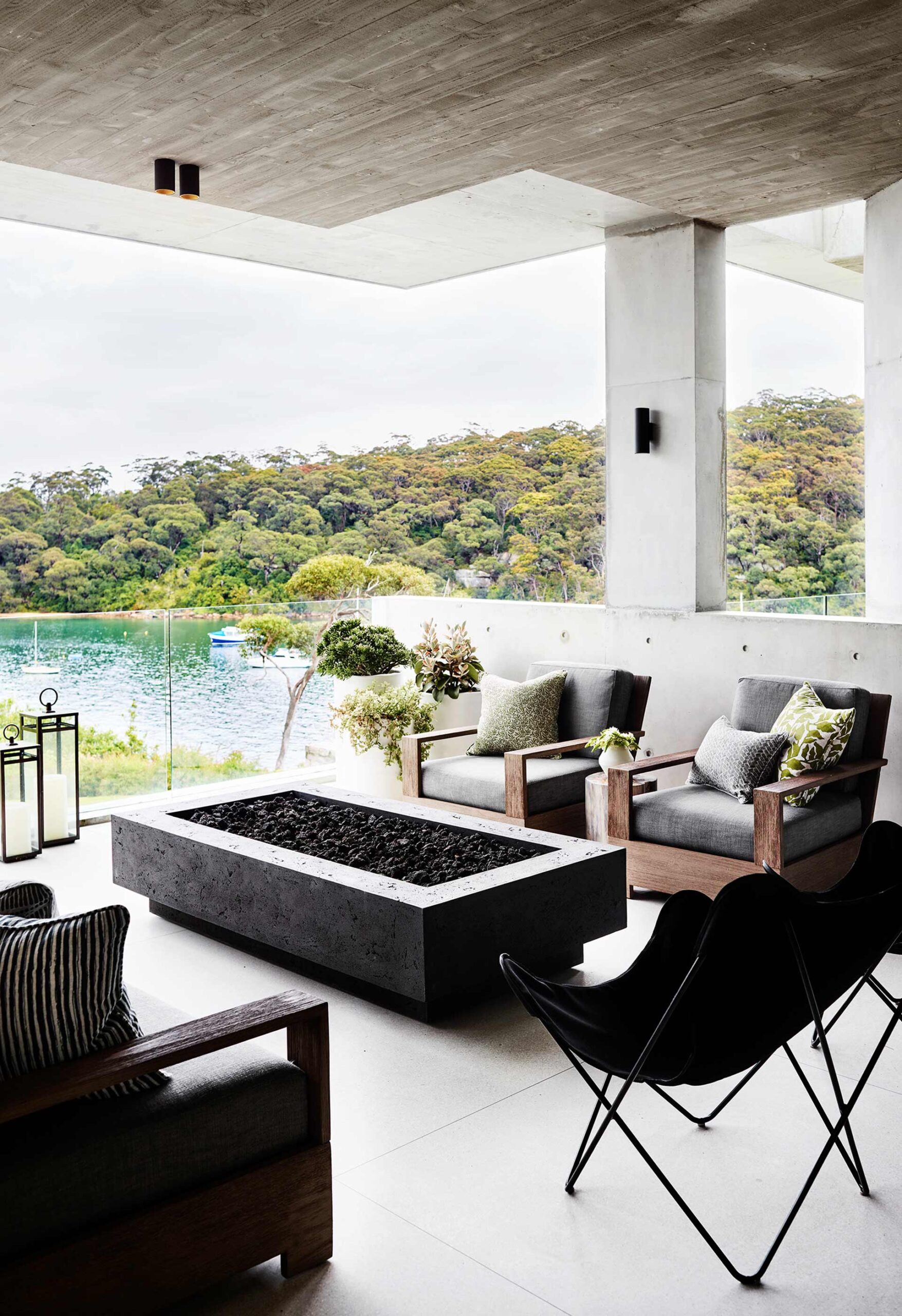 A more modern take on the fire pit, this Modernist home in Sydney features an in-built sculptural fire pit that has become the centrepiece of the outdoor entertaining area.