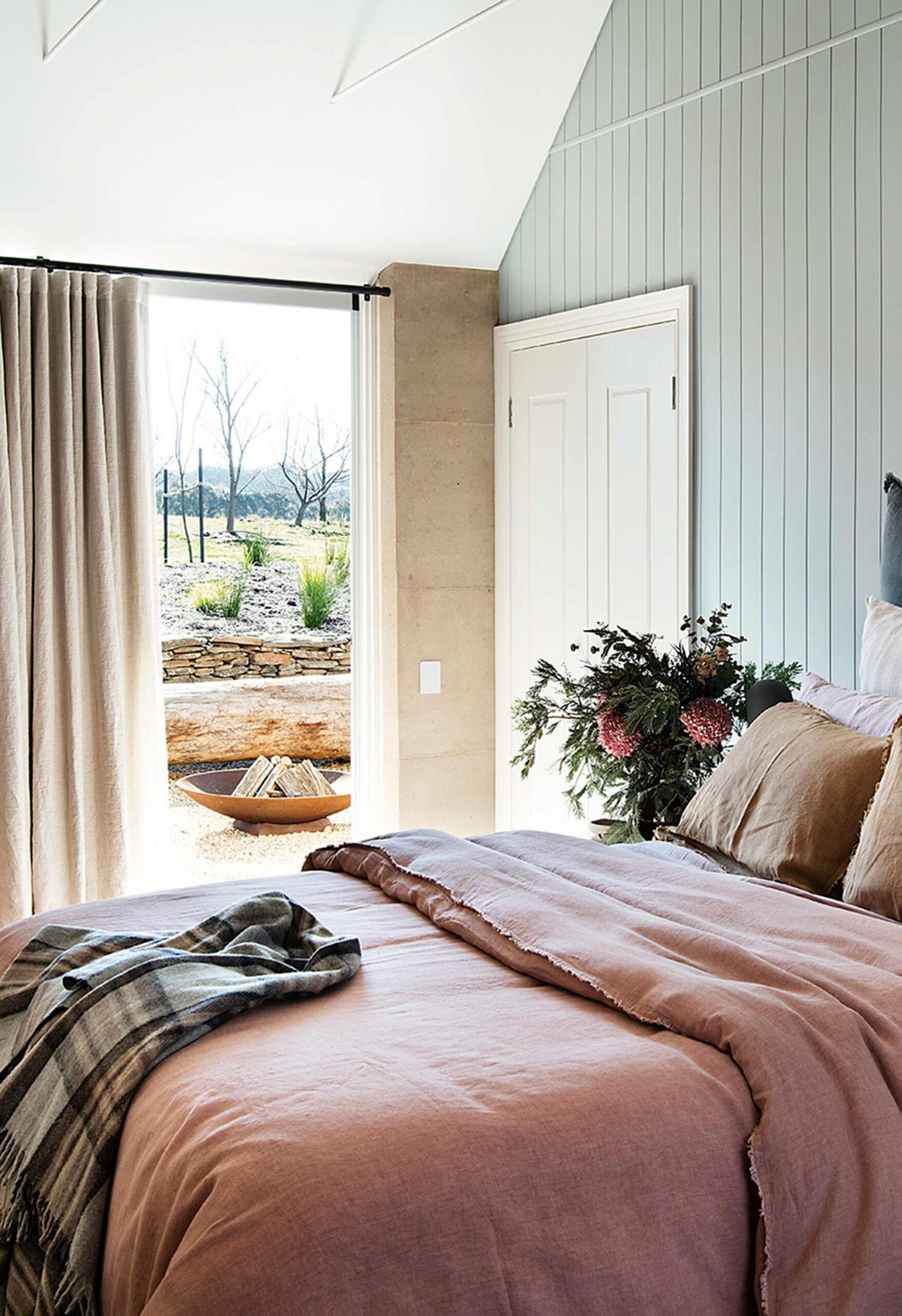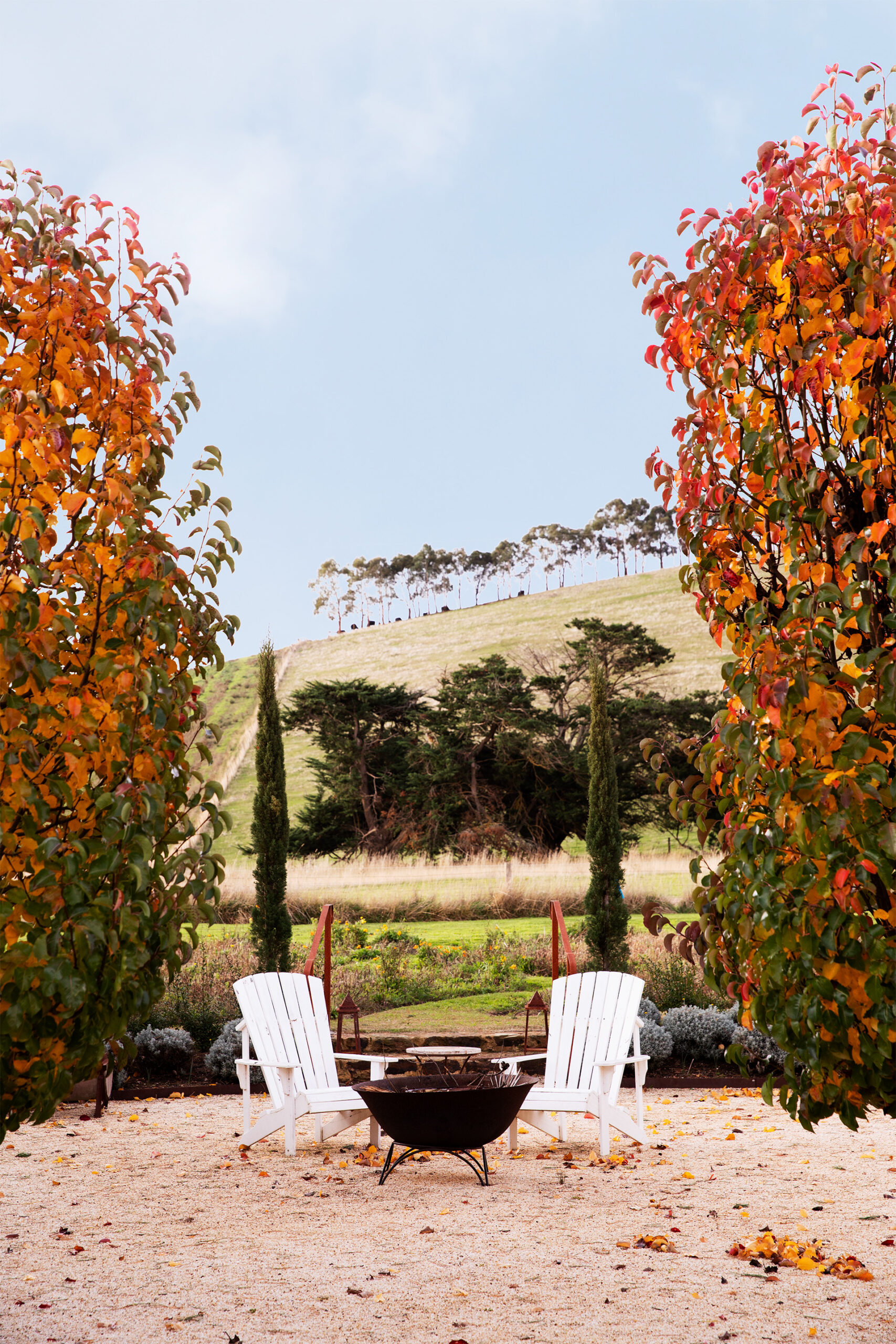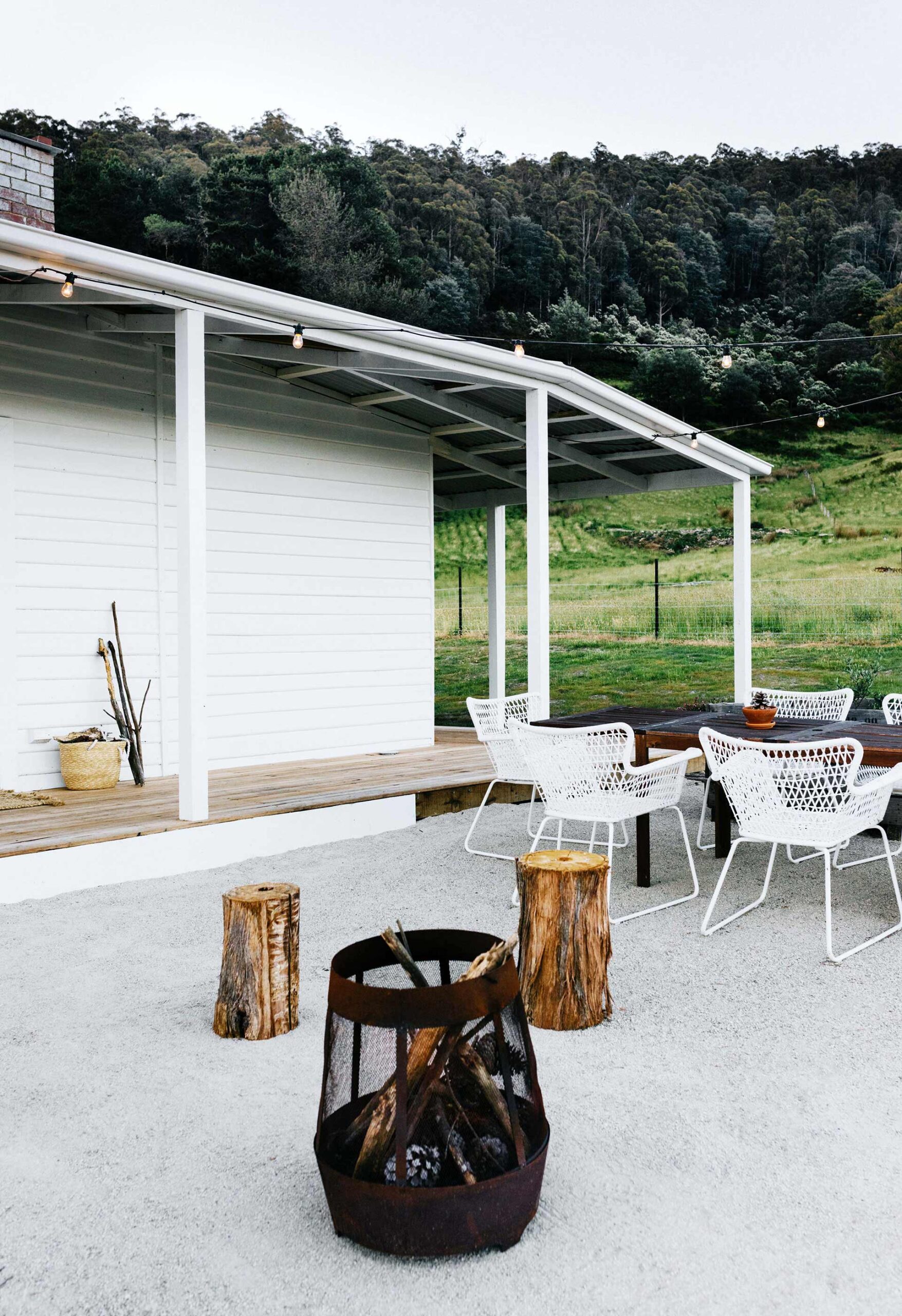 This old farm cottage in Tasmania has been transformed into a dreamy holiday home, complete with the perfect outdoor entertaining zone. Log stools and outdoor chairs make gathering around this sculptural fire pit the obvious choice at nightfall.